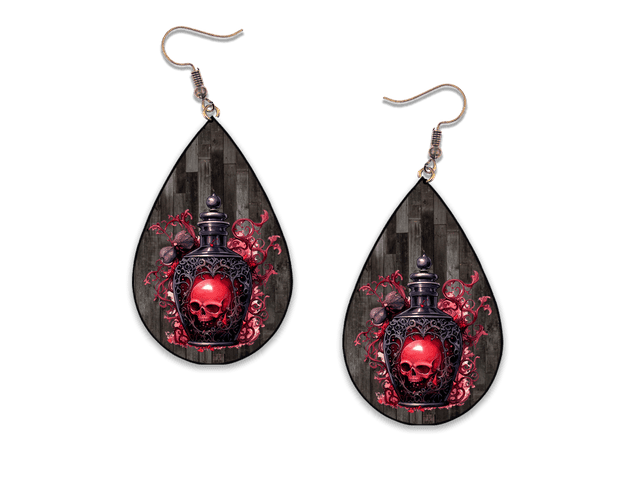 Poison Skull Wood Teardrop Earrings